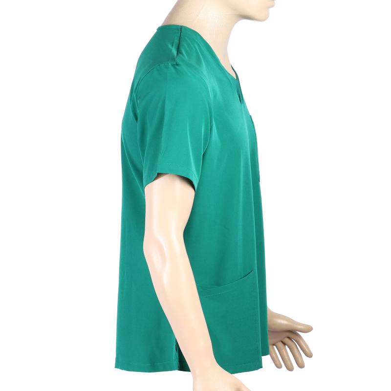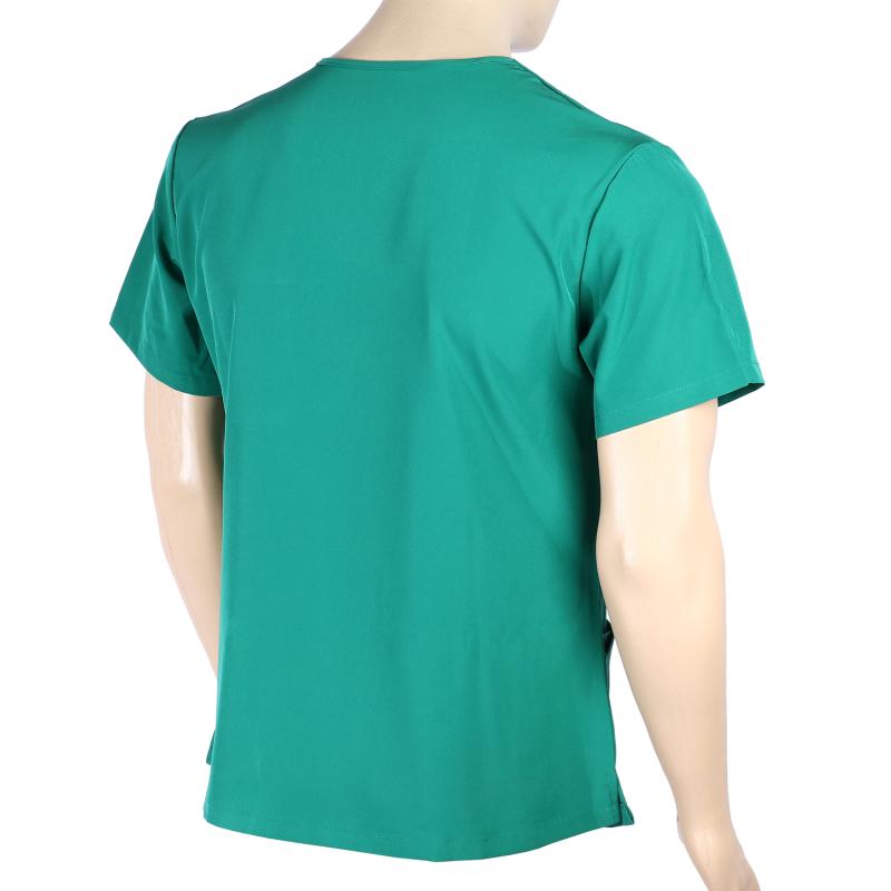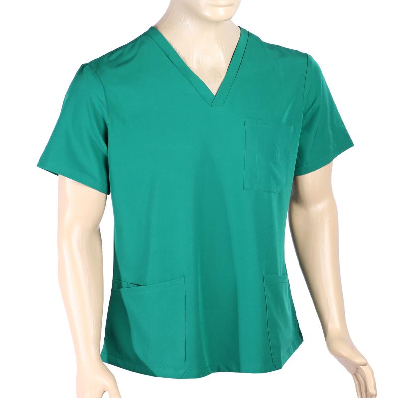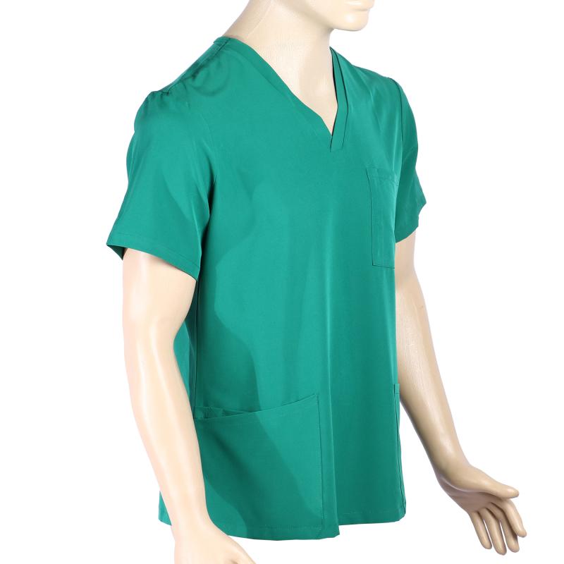 Ιατρική ελαστική μπλούζα κοντομάνικη με 'V' λαιμό, τρείς εξωτερικές τσέπες και κόψιμο στο πλάι .