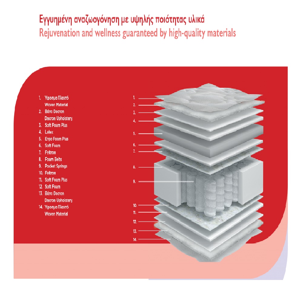 Το ύψος του στρώματος μπορεί να παρουσιάζει απόκλιση +/- 1,5cm λόγω της φύσης των υλικών.