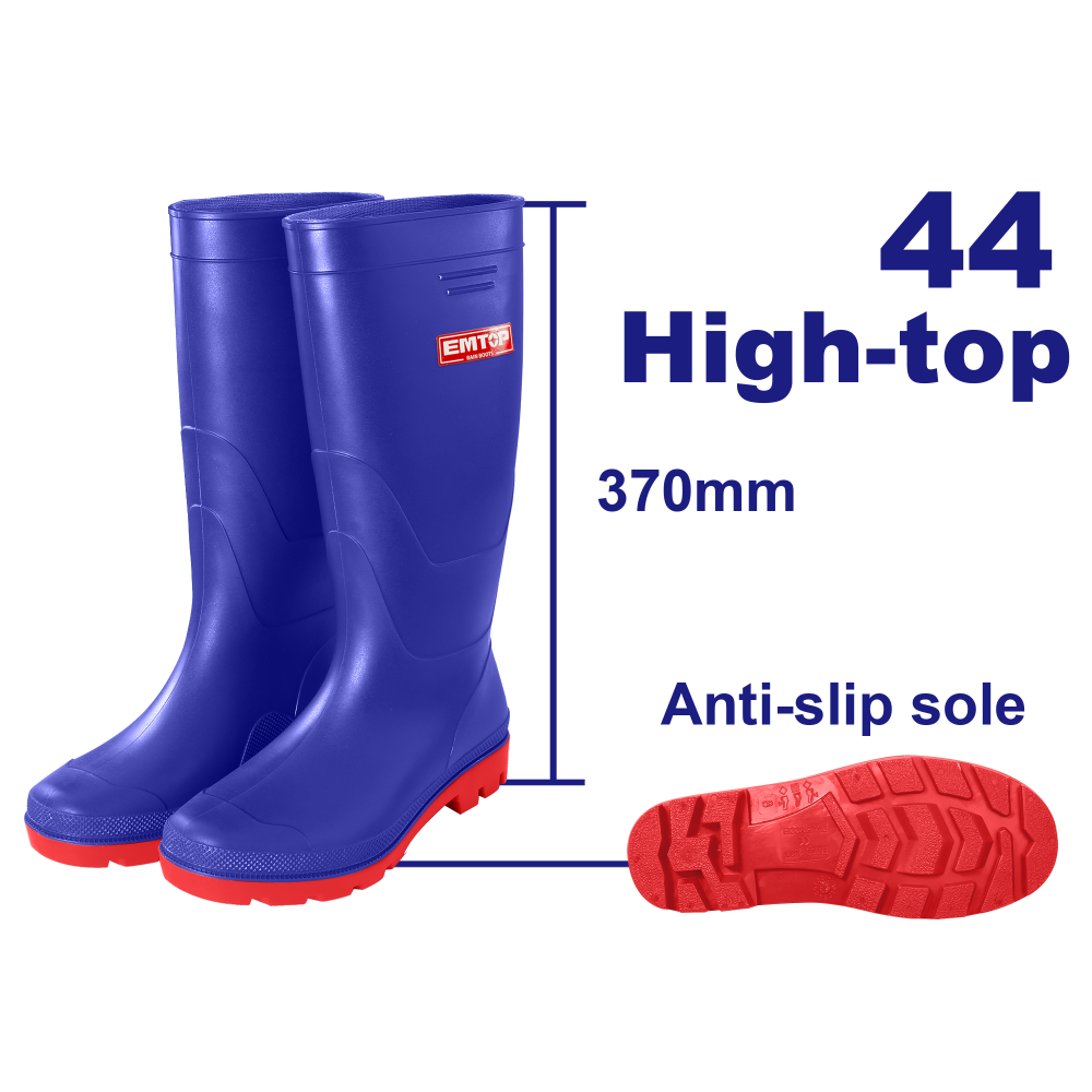Ο μαλακός πάτος σε συνδυασμό με την ευλύγιστη σόλα του, την κάνει άνετη στο περπάτημα καθώς διαθέτει αντιολισθητική σόλα με καλό κράτημα, ιδανική για ολισθηρές επιφάνειες. Κατάλληλη για τις εργασίες και δραστηριότητες που απαιτούν ασφάλεια από το νερό, το χώμα, διάφορα οξέα και αλκάλια. Οι γαλότσες EMTOP είναι ένα αξιόπιστο και αποτελεσματικό εργαλείο, ιδανικό για λάτρεις των DIY, και επαγγελματίες.