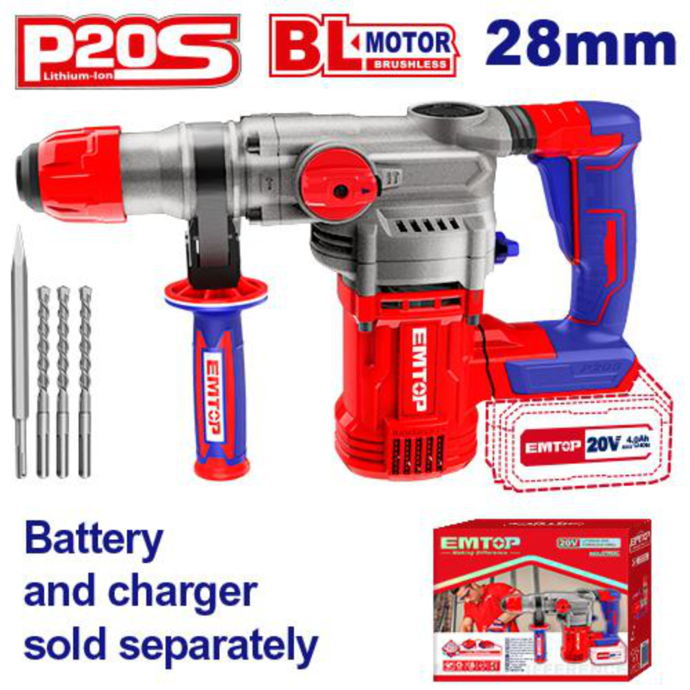 EMTOP BRUSHLESS ΣΚΑΠΤΙΚΟ ΠΕΡΙΣΤΡΟΦΙΚΟ ΠΙΣΤΟΛΕΤΟ 4,5J SDS-PLUS ΜΠΑΤΑΡΙΑΣ 20V ELRH20288
