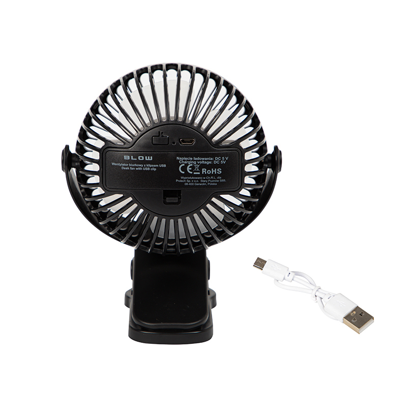 Επιτραπέζιος ανεμιστήρας με κλιπ 10cm USB+μπαταρία Blow μαύρος