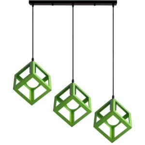 Κρεμαστό φωτιστικό οροφής τριπλό τετράγωνο ρόμβος μεταλλικό πράσινο χρώμα E27 R50 CUBIO 45