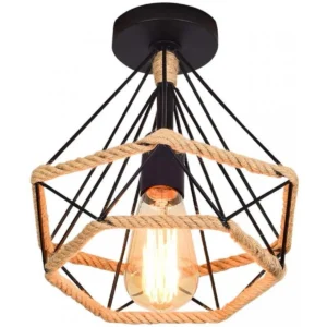 Φωτιστικό οροφής – Πλαφονιέρα σχήμα διαμάντι μαύρο με σχοινί 25cm Nitorio 69