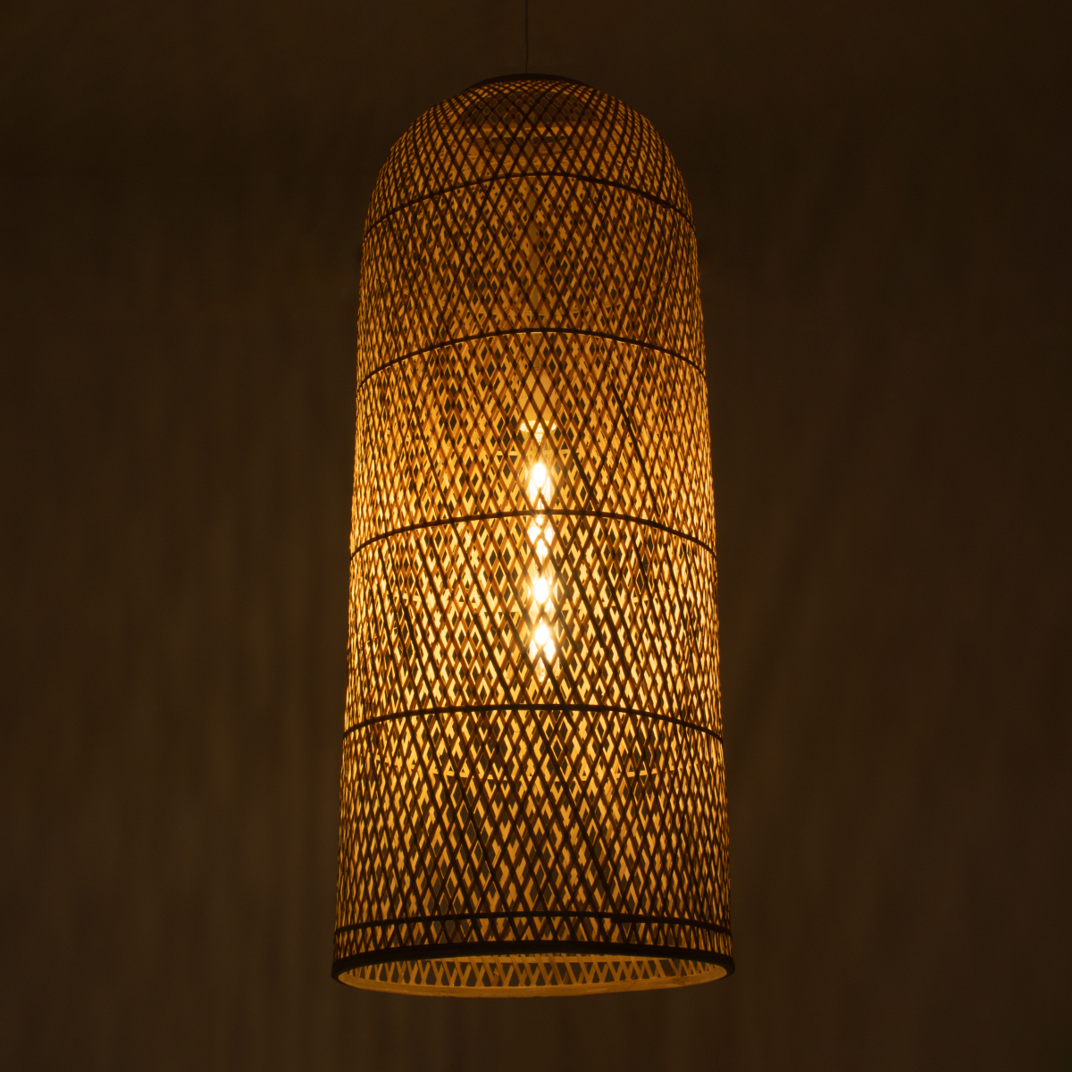 GloboStar® CALERO 01712 Boho Κρεμαστό Φωτιστικό Πλέγμα Μονόφωτο 1 x E27 IP20 Μπεζ Ξύλο – Μ40 x Π40 x Υ90cm