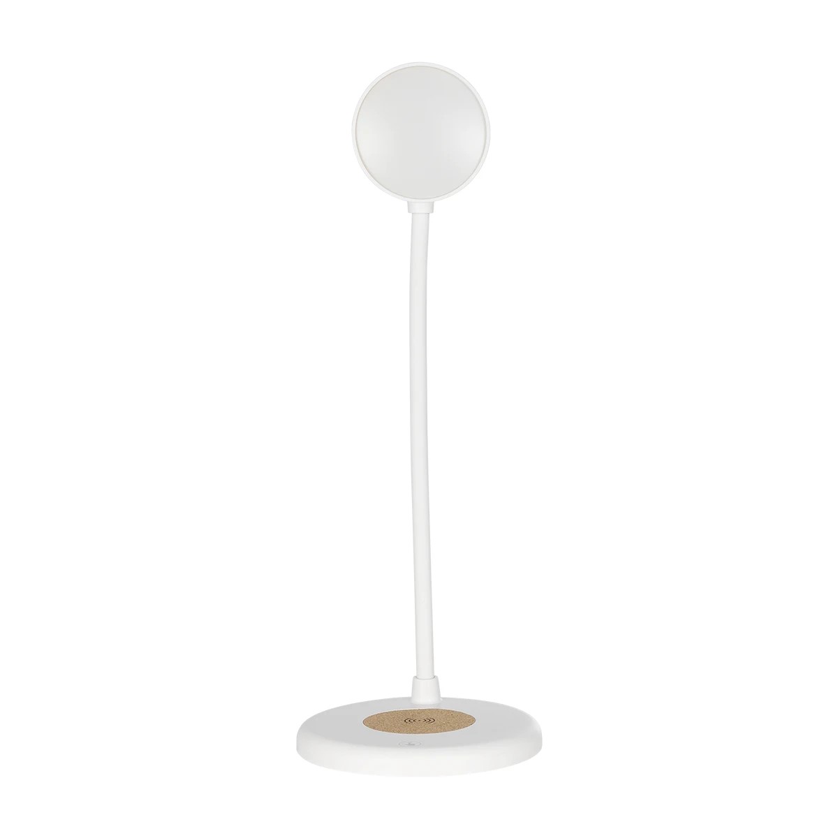 GLOBOSTAR® LUCORA 76555 Μοντέρνο Επιτραπέζιο Φωτιστικό Γραφείου με Ασύρματη Φόρτιση 10W 2A & 4W Bluetooth Ηχείο LED 3W 300lm 120° DC 5V με USB-C IP20 Ρυθμιζόμενο Λευκό CCT με Αφή 2700K/4500K/6000K Dimmable – Sanan SMD Chip – Λευκό – Μ12 x Π12 x Υ34cm – 2 Χρόνια Εγγύηση