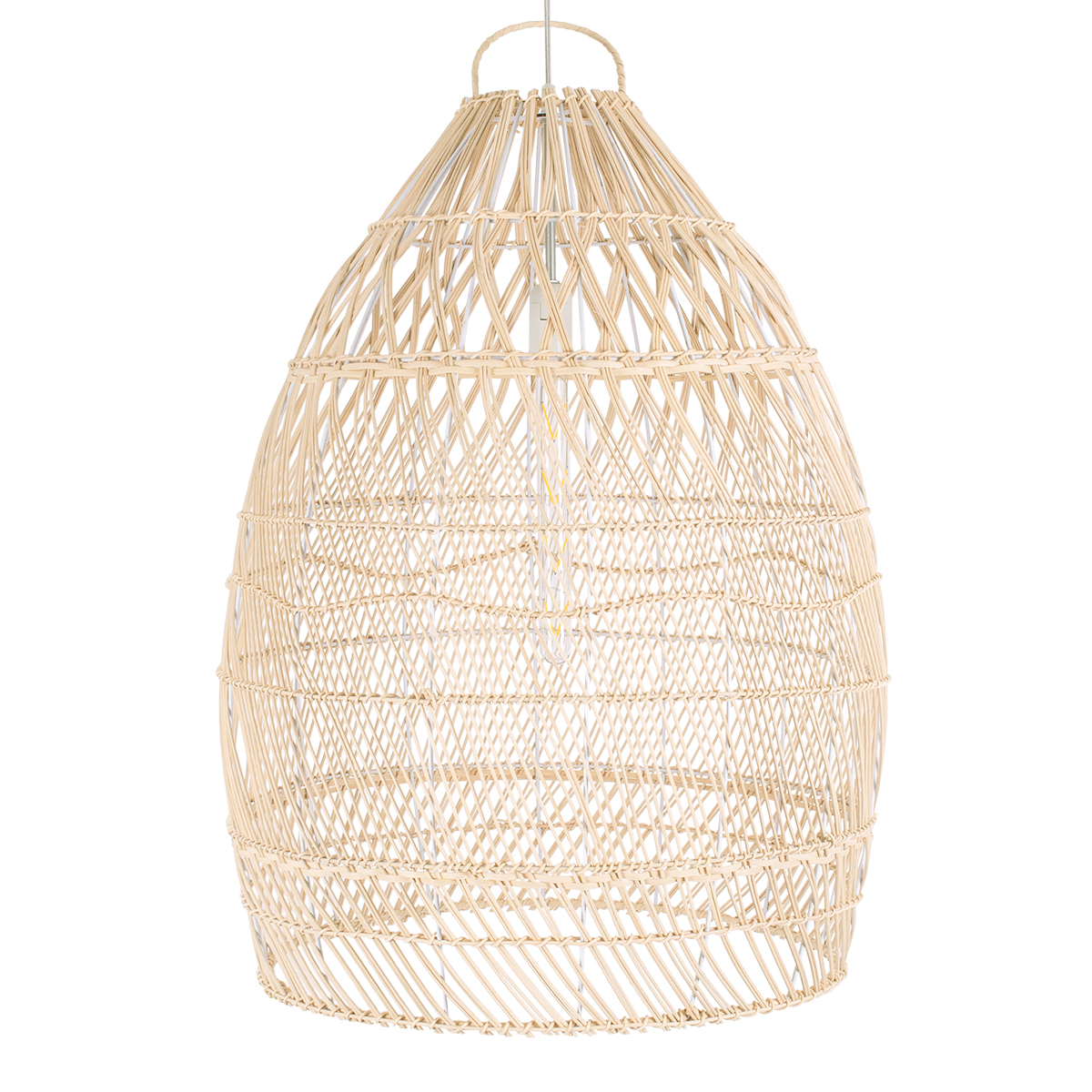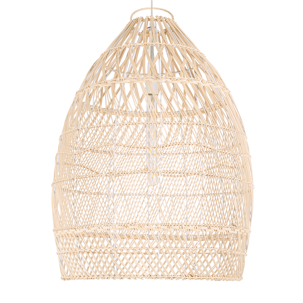 GloboStar® MALIBU 01810 Boho Κρεμαστό Φωτιστικό Καμπάνα Μονόφωτο 1 x E27 IP20 Μπεζ Ξύλο – Μ57 x Π57 x Υ75cm