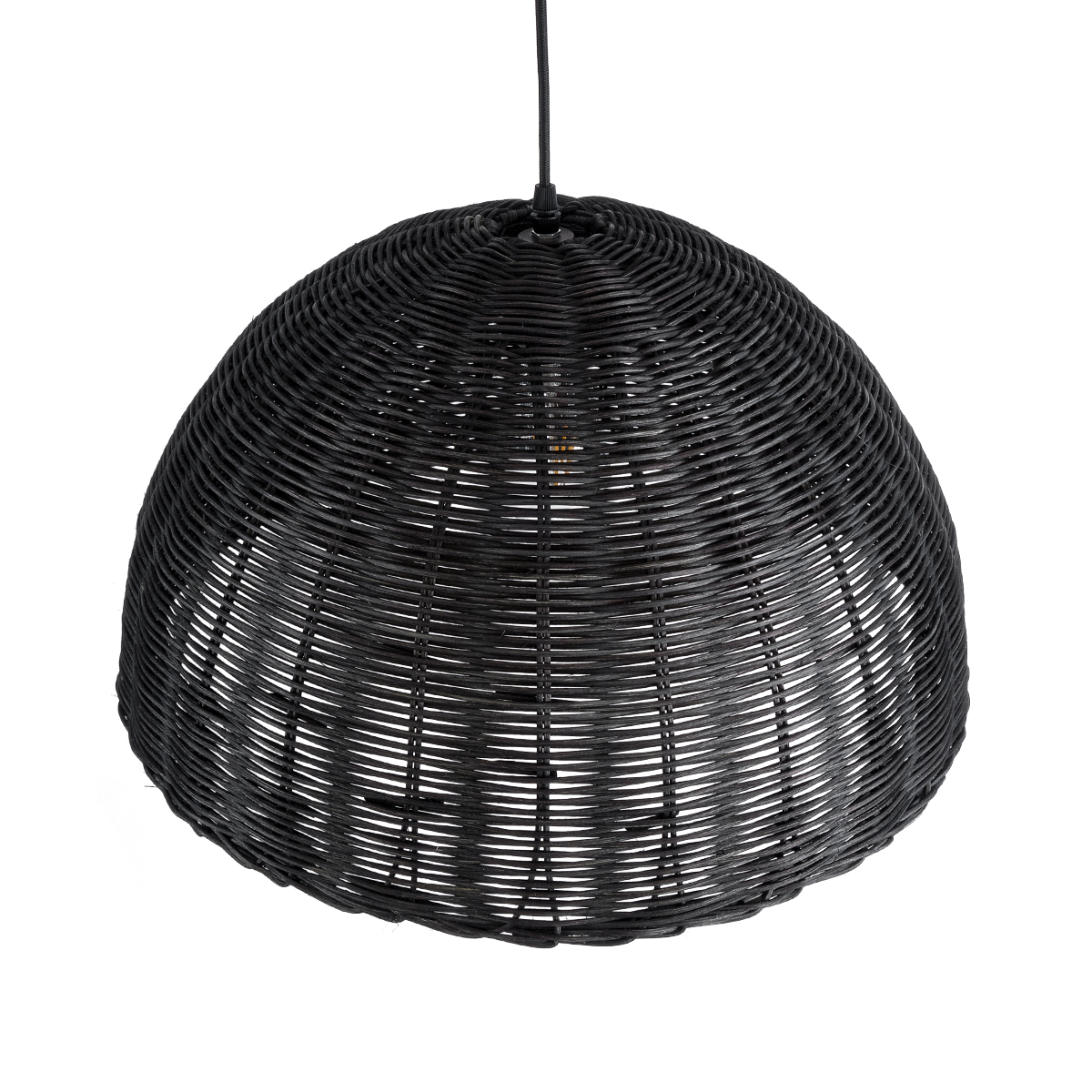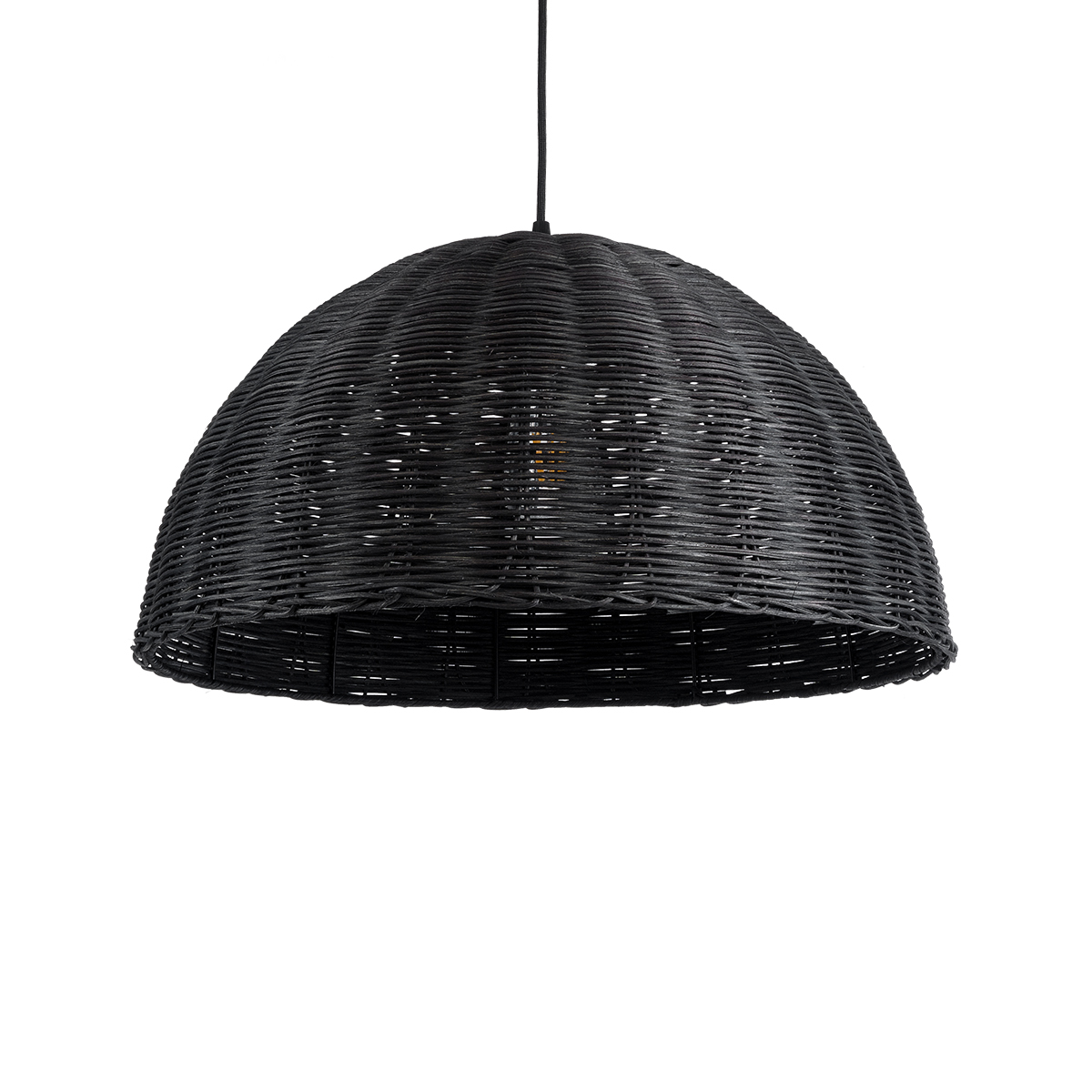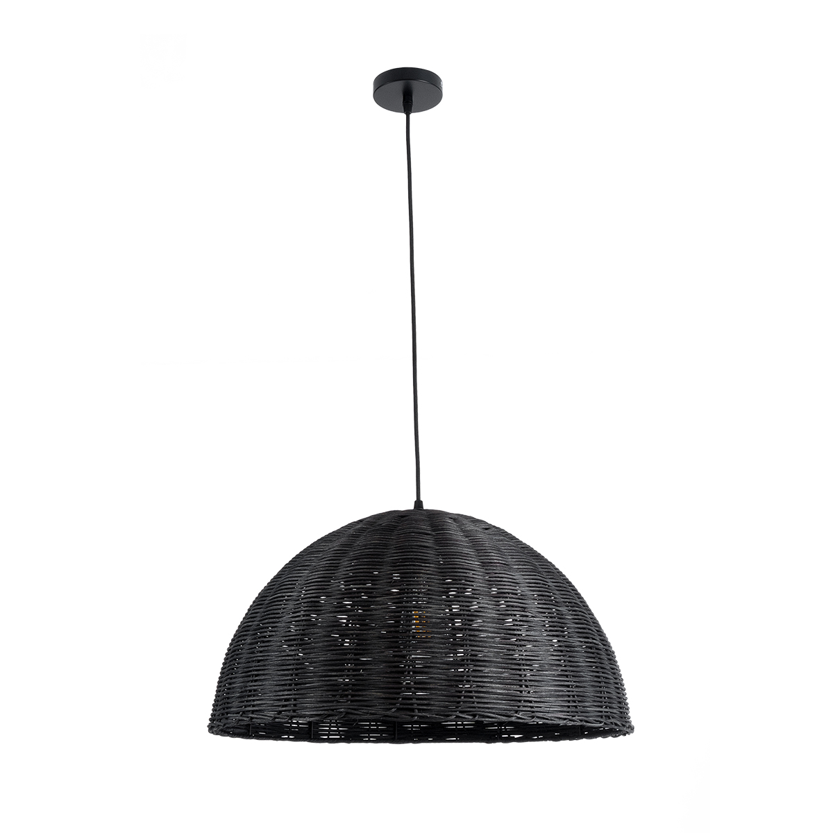 GloboStar® MONTANA 02383 Boho Κρεμαστό Φωτιστικό Καμπάνα Μονόφωτο 1 x E27 IP20 Μαύρο Ξύλο – Μ50 x Π50 x Υ25cm