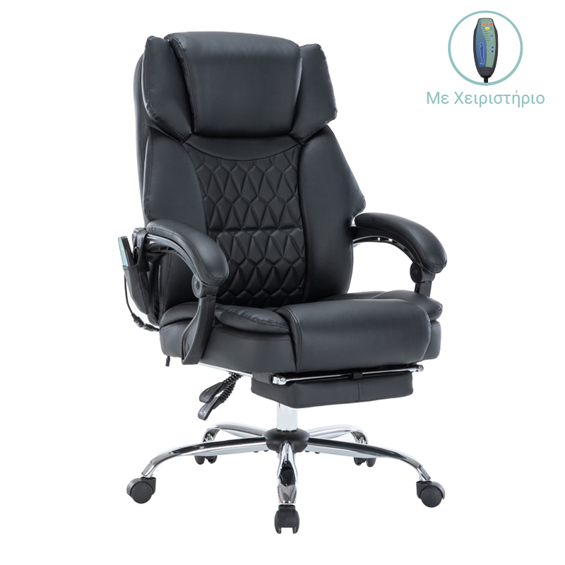 Καρέκλα γραφείου διευθυντή Thrive pakoworld Premium Quality μηχανισμός massage-θερμαινόμενη πλάτη pu μαύρο