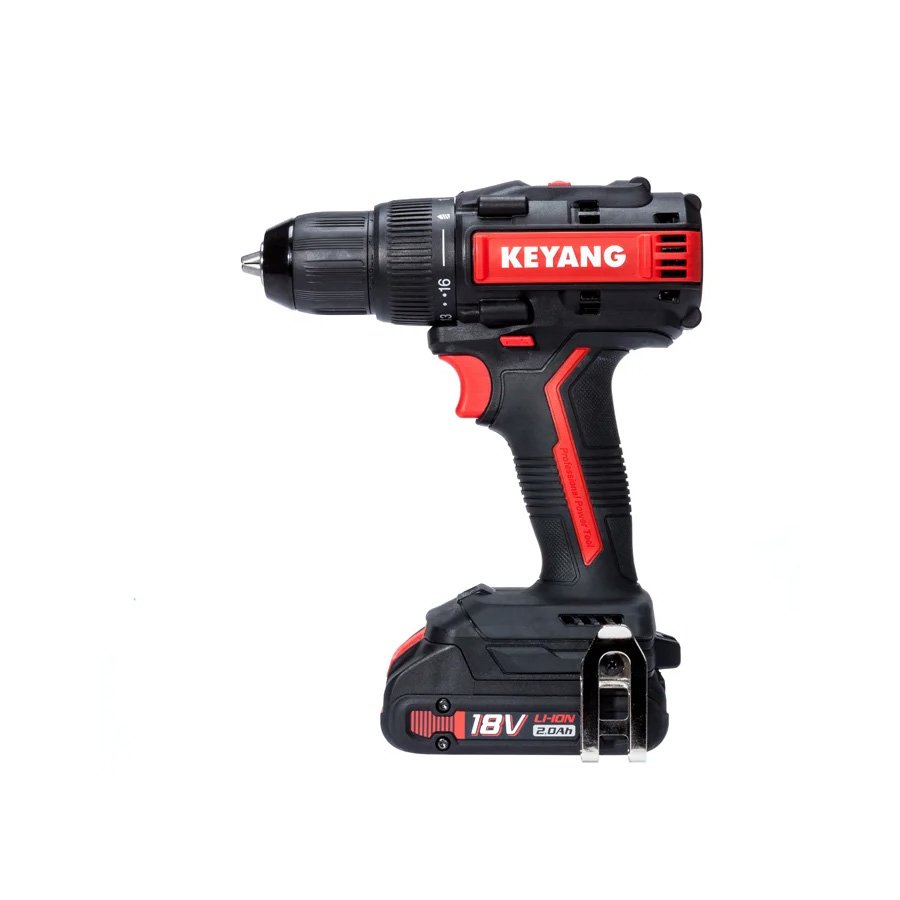 Το Δραπανοκατσάβιδο KEYANG DD18BLW, προσφέρει ισχυρό μοτέρ αποτελούμενο από μεταλλικά γρανάζια τιτανίου και κιβώτιο 2 ταχυτήτων, αγγίζοντας ροπή στρέψης τα 55N.m,και φτάνοντας τις 1.800 στροφές χωρίς φορτίο. Η μπαταρία περιλαμβάνει ένδειξη LED υποδεικνύοντας τον υπολειπόμενο χρόνο λειτουργίας καθώς και εργονομική ποιότητα κατασκευής. Διαθέτει ταχυφορτιστή, με διάρκεια πλήρης φόρτισης τα 20'.