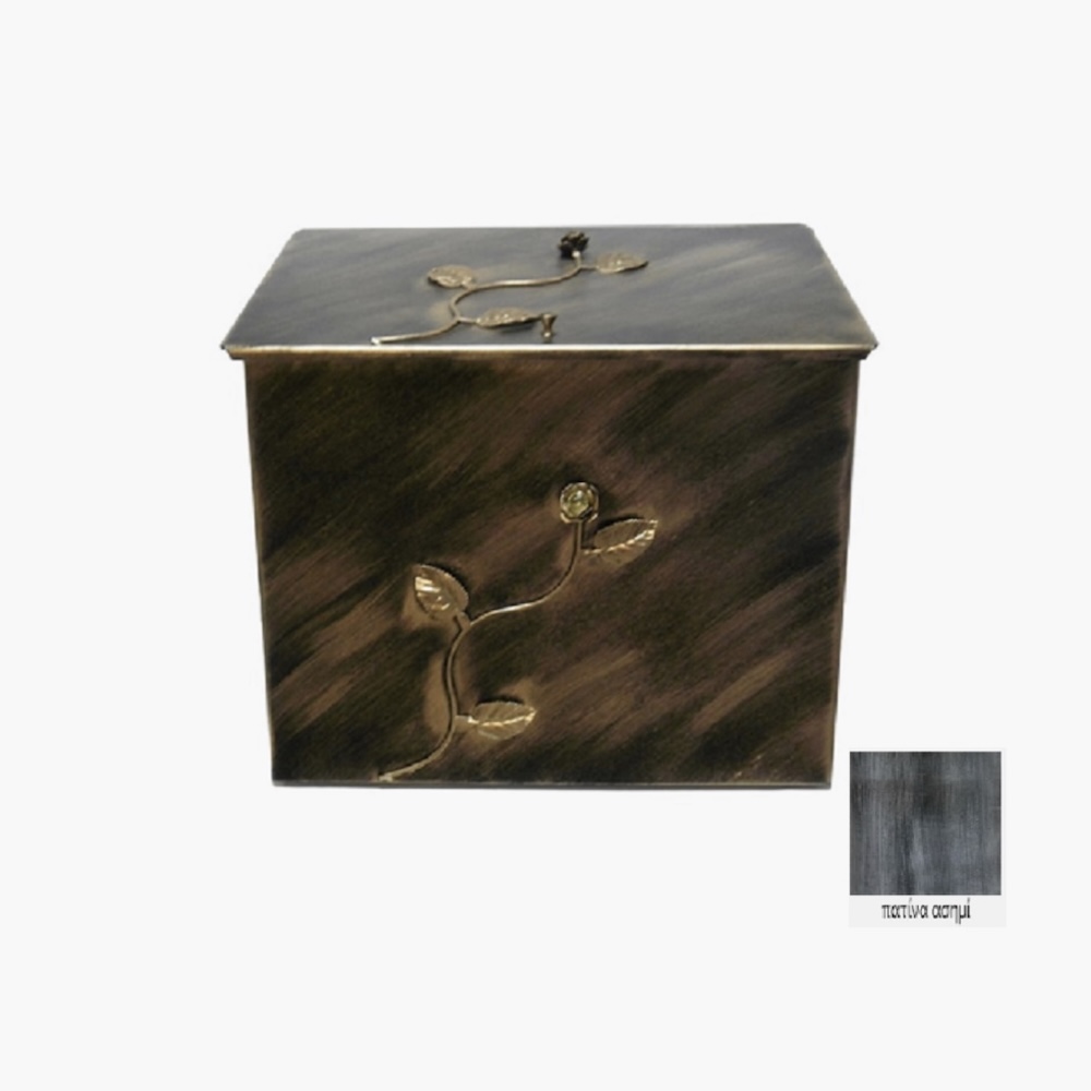 Μεταλλικό Κουτί Αποθήκευσης Ξύλων με σχέδιο λουλούδι Strass 63x54x44cm Πατίνα-Χαλκός / S812PC