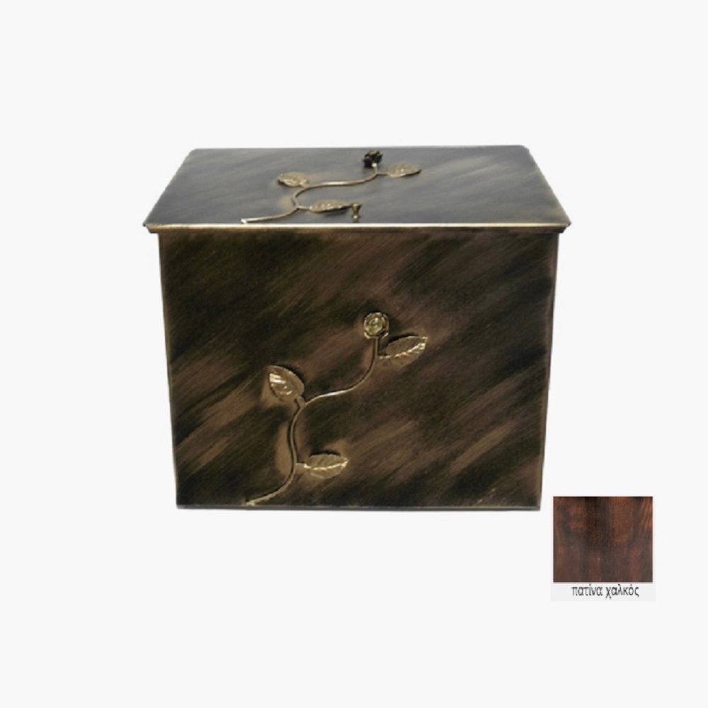 Μεταλλικό Κουτί Αποθήκευσης Ξύλων με σχέδιο λουλούδι Strass 63x54x44cm Πατίνα-Χαλκός / S812PC
