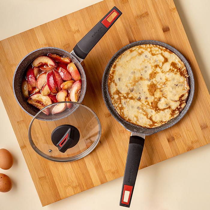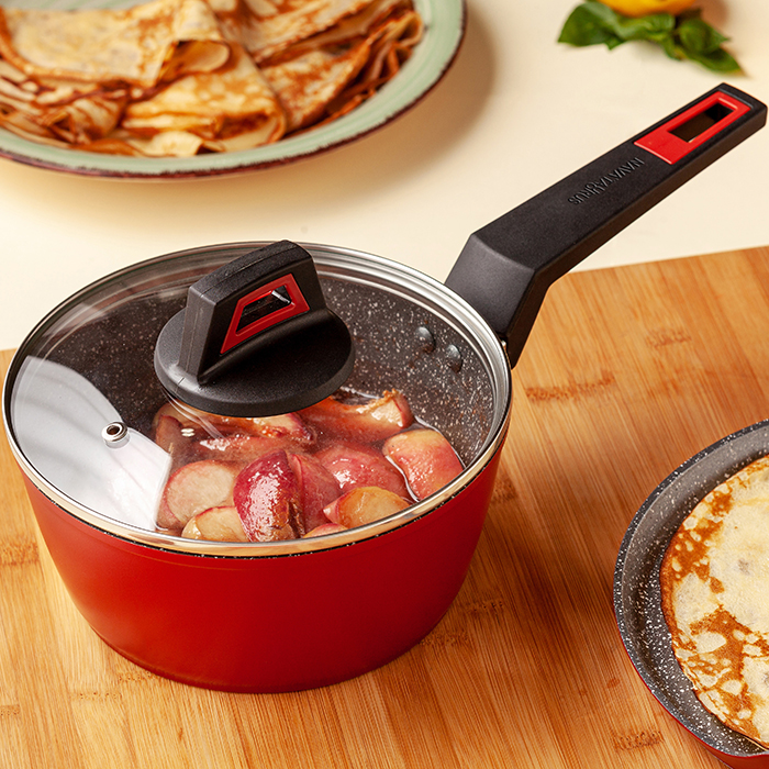 Γαλατιέρα – σωτέζα “TAURUS” με καπάκι και αντικολλητική επίστρωση stone 18cm