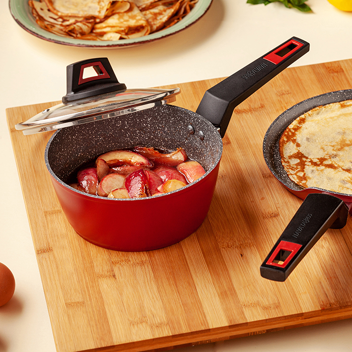NAVA – Γαλατιέρα – σωτέζα “TAURUS” με καπάκι και αντικολλητική επίστρωση stone 18cm