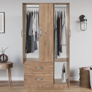 Ντουλάπα ρούχων τρίφυλλη Zelia pakoworld με 2 συρτάρια σε λευκή – oak απόχρωση 90x42x180εκ