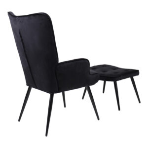 Πολυθρόνα με υποπόδιο Siella pakoworld μαύρο βελούδο και μαύρο μέταλλο πόδι 59x67x94εκ