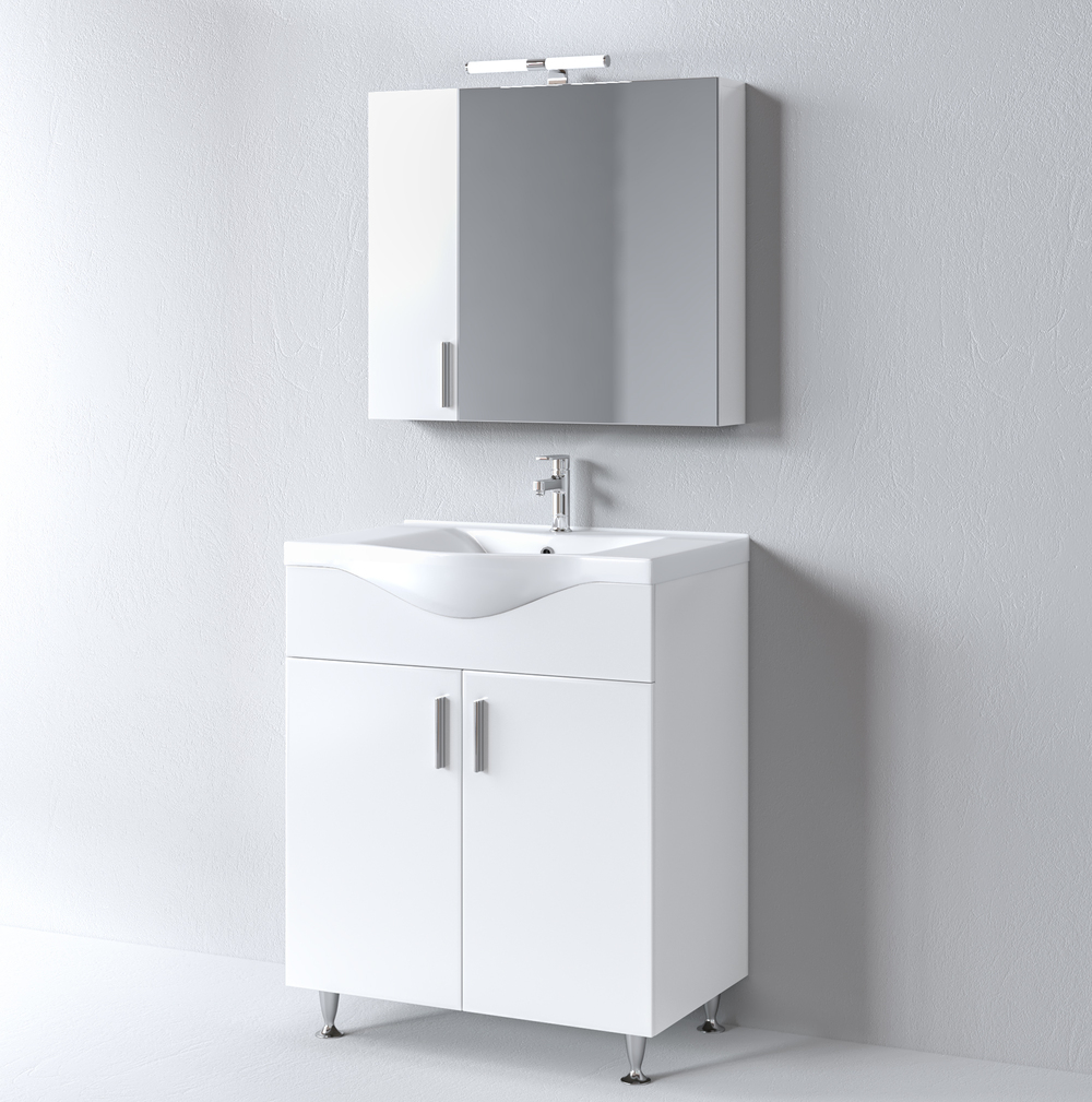 Σετ Έπιπλο Μπάνιου SIENA WHITE 75 9SSI075GL0W Πάγκο 72x34x83cm Αποτελείται από: Πάγκος με τέσσερα ποδαράκια SIENA 75 WHITE. Διαθέτει ευρύχωρο ντουλάπι με δύο πόρτες. Περιλαμβάνει εσωτερικό ράφι που σας προσφέρει έξτρα χώρο για την τοποθέτηση και οργάνωση των αντικειμένων σας. Καθρέφτης SIENA WHITE 75. Περιλαμβάνει πρόσοψη καθρέφτη που ανοίγει προς τα δεξιά και μια μικρότερη ξύλινη πόρτα στο αριστερό πλαϊνό μέρος, στον ίδιο χρωματισμό με τον καθρέφτη, που ανοίγει προς τα αριστερά. Το μικρό ντουλαπάκι διαθέτει ένα ράφι που σας προσφέρει έξτρα αποθηκευτικό χώρο. Το μεγάλο ντουλάπι διαθέτει επίσης εσωτερικό ράφι για την τοποθέτηση των φαρμάκων και αντικειμένων καθημερινής χρήσης. Νιπτήρας BASIC 75 από λευκή πορσελάνη κορυφαίας ποιότητας και υψηλής αντοχής και αισθητικής. Διαθέτει οπή υπερχείλισης. Μελαμίνη 16mm πάχος Το Σετ Έπιπλο Μπάνιου Siena στην απόχρωση White αποτελεί ένα στυλάτο και μοντέρνο κομμάτι! Μετατρέπει το μπάνιο σας σε πραγματικό χώρο χαλάρωσης. Το λευκό γυαλιστερό χρώμα έχει μεγάλη διάρκεια και αντοχή στο χρόνο. •Πρακτικοί αποθηκευτικοί χώροι •Μηχανισμοί για απαλό και αθόρυβο κλείσιμο •Εύκολη τοποθέτηση •Ετοιμοπαράδοτα προϊόντα Δεν συμπεριλαμβάνονται το φωτιστικό, η μπαταρία και η στήλη. Διατίθεται έτοιμο συναρμολογημένο.