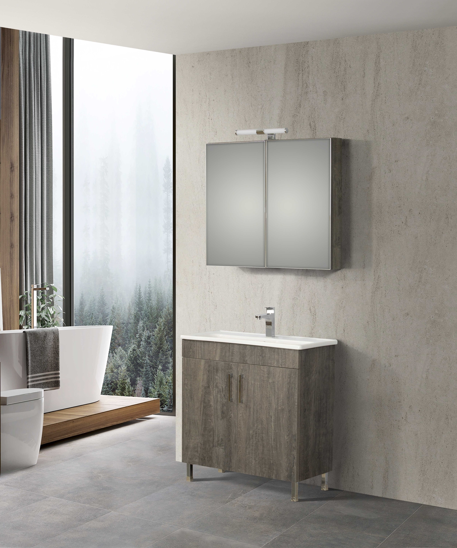 Σετ Έπιπλο Μπάνιου Skopelos Berlin 80 9SSK080BE0W Πάγκος 78x36x83 Αποτελείται από: Πάγκος με τέσσερα ποδαράκια Skopelos 80. Περιλαμβάνει αποθηκευτικό χώρο και εσωτερικό ράφι για την ταξινόμηση και οργάνωση χρηστικών αντικειμένων. Σας προσφέρει ασφάλεια και ευκολία στη χρήση του. Διαστάσεις 78x36x83 Καθρέφτης 78x11x65. Διαθέτει ένα ντουλάπι με εσωτερικό ράφι με δύο φύλλα καθρέφτη και αποθηκευτικό χώρο για την τοποθέτηση αντικειμένων καθημερινής χρήσης. Το Σετ Έπιπλο Μπάνιου Skopelos στην εντυπωσιακή γκρι απόχρωση αποτελεί ένα στυλάτο και μοντέρνο κομμάτι για το μπάνιο σας! Προσαρμόζεται σε κάθε τύπο μπάνιου. •Πρακτικοί αποθηκευτικοί χώροι •Μηχανισμοί για απαλό και αθόρυβο κλείσιμο •Εύκολη τοποθέτηση •Ετοιμοπαράδοτα προϊόντα Δεν συμπεριλαμβάνεται η μπαταρία και το φωτιστικό. Διατίθεται έτοιμο συναρμολογημένο.