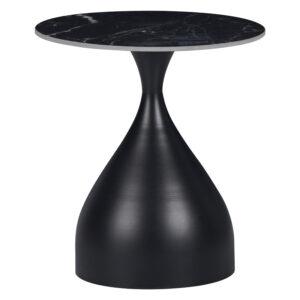 Βοηθητικό τραπέζι Kirkene Inart sintered stone σε απόχρωση μαύρο μαρμάρου με μαύρο μέταλλο Φ50×50εκ