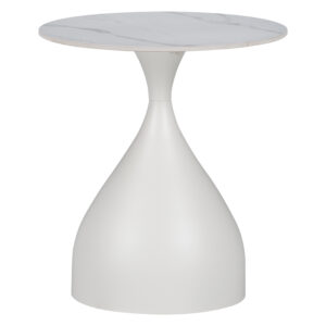 Βοηθητικό τραπέζι Kirkene Inart sintered stone σε απόχρωση λευκό μαρμάρου με λευκό μέταλλο Φ50×50εκ