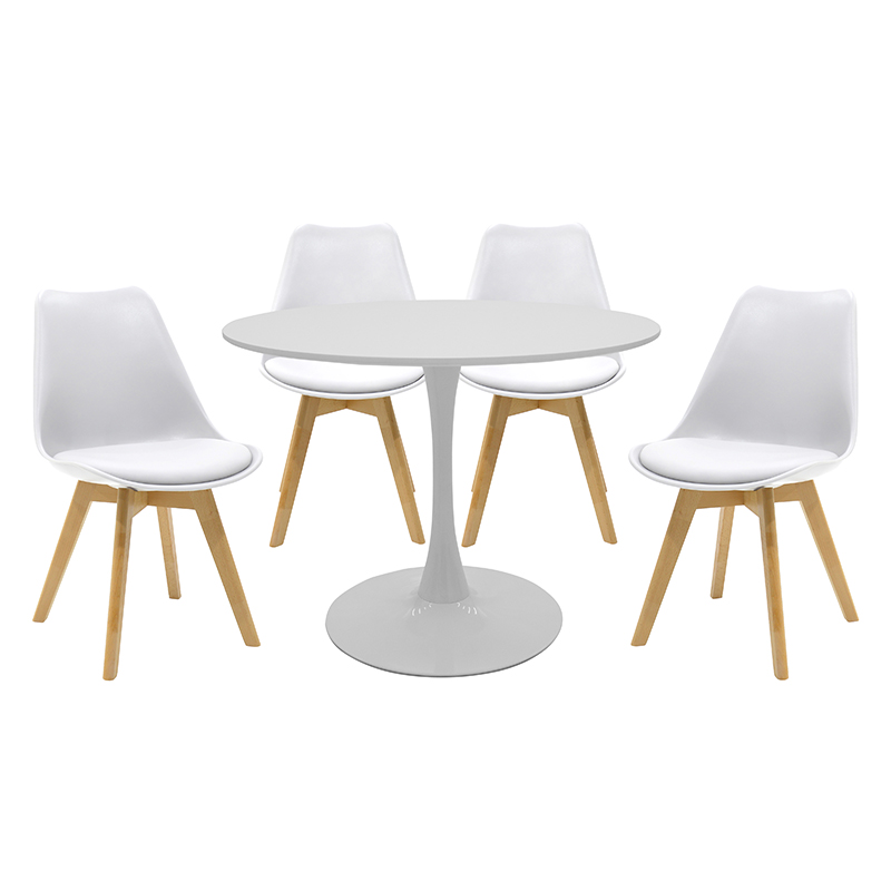 Τραπεζαρία Balou-Gaston σετ 5τεμ pakoworld MDF και pp σε λευκή-φυσική απόχρωση Φ100×73εκ