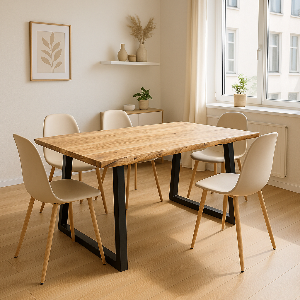 Τραπέζι Miles pakoworld μασίφ ξύλο ακακίας πάχους 3.7-4εκ σε φυσική απόχρωση με μαύρα μεταλλικά πόδια 200x100x76εκ