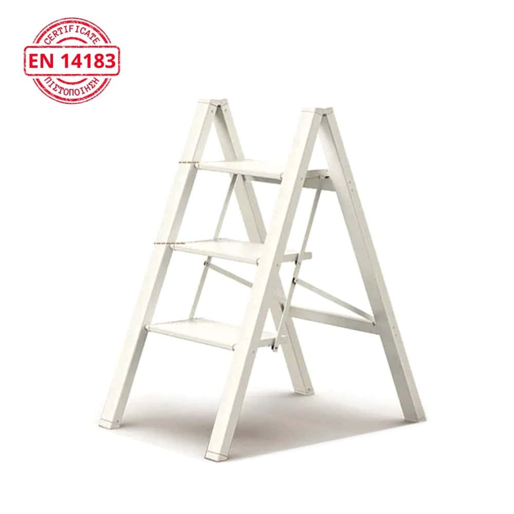 Σκαλοσκαμπό αλουμινίου πολλαπλών χρήσεων ιδανικό για χρήση σε σπίτια, καταστήματα, αποθήκες και γενικά σε χώρους όπου απαιτείται να φτάσετε ψηλότερα. Κατασκευασμένο από ενισχυμένο κράμα αλουμινίου υψηλής ποιότητας με ηλεκτροστατική βαφή σε λευκό χρώμα. Με πιστοποίηση ΕΝ 14183 με μέγιστο βάρος φορτίου 150 κιλά. Είναι πτυσσόμενο για να καταλαμβάνει λίγο χώρο όταν δεν το χρησιμοποιείτε. Με αντιολισθητική, επιφάνεια σε κάθε σκαλοπάτι και λαστιχένιες τάπες και στα τέσσερα πόδια για να είναι σταθερό και ασφαλές σε κάθε σας βήμα. Ιδανικό και ως πρόταση διακόσμησης αφού μπορεί να χρησιμοποιηθεί και ως ραφιέρα. Όλα τα σκαλοπάτια έχουν διάσταση 17,5×31 εκατοστά για να πατάτε πάνω τους σταθερά.