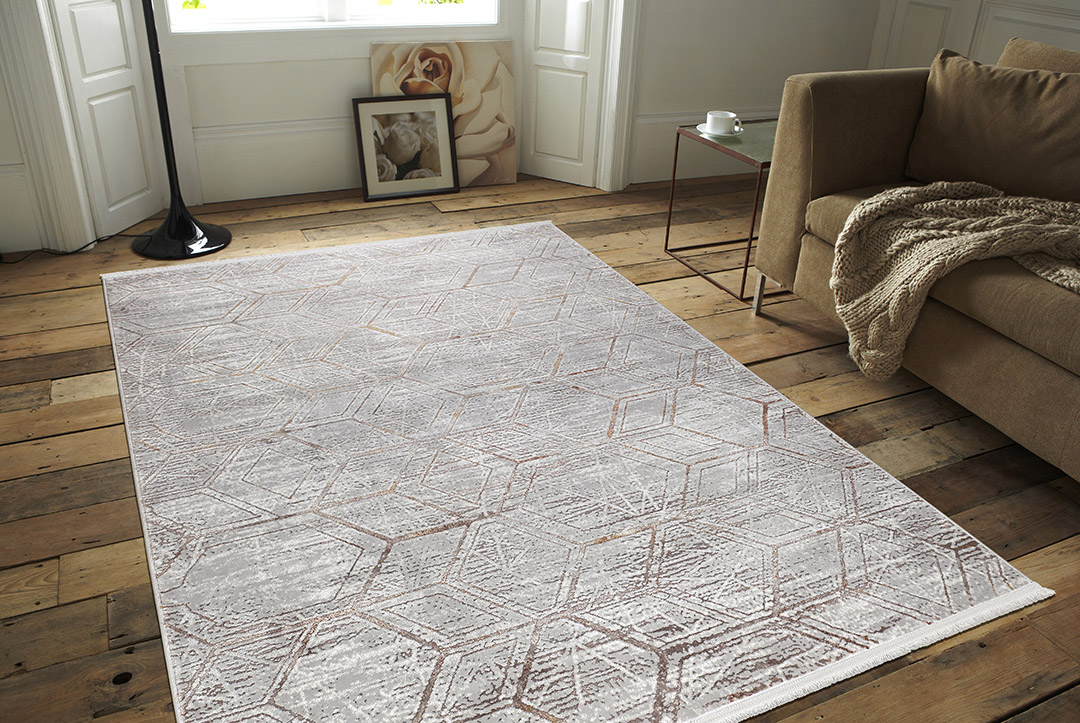 Η νέα σειρά Valencia έχει ως βάση το διαχρονικό γκρι-ασημί και το συνδυάζει με υπέροχες ανάγλυφες πινελιές σε αποχρώσεις του χαλκού, του γαλάζιου, του κίτρινου και του ροζ, προσδίδοντας έναν ιδιαίτερα μοντέρνο χαρακτήρα στον χώρο σας. Στις διαστάσεις χαλιού διατίθεται με γκρι κρόσσια.